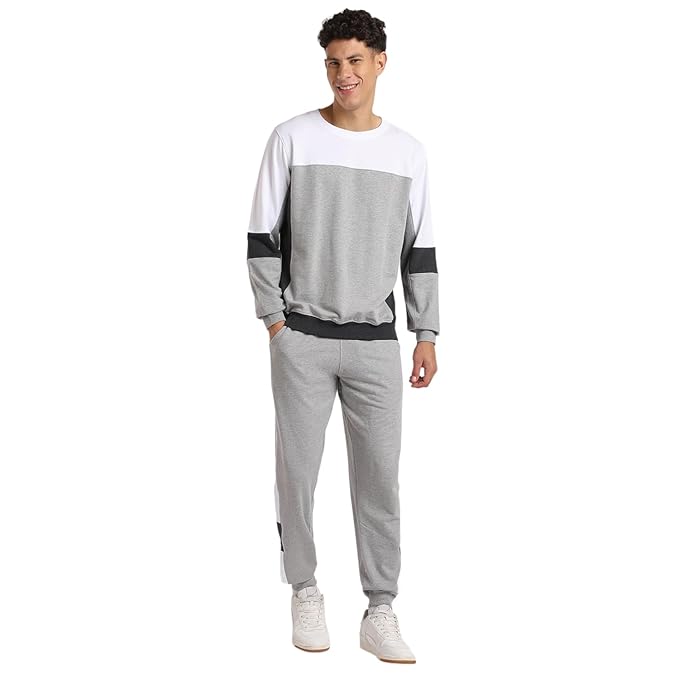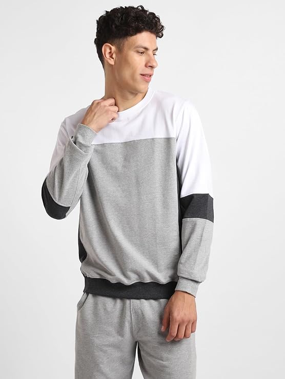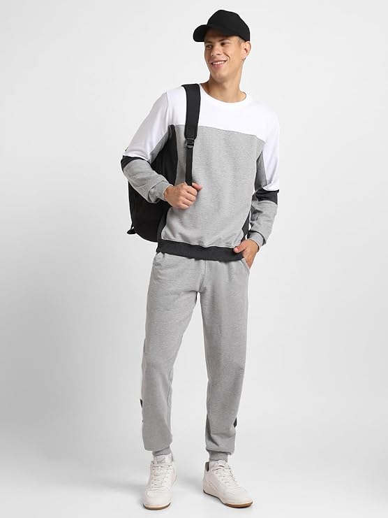 Pick Any 2 NOBERO Grey Melange Co-ord Set for Men | Comfy Pure Cotton Grey Lounge Wear | Jogger and Sweatshirt Set